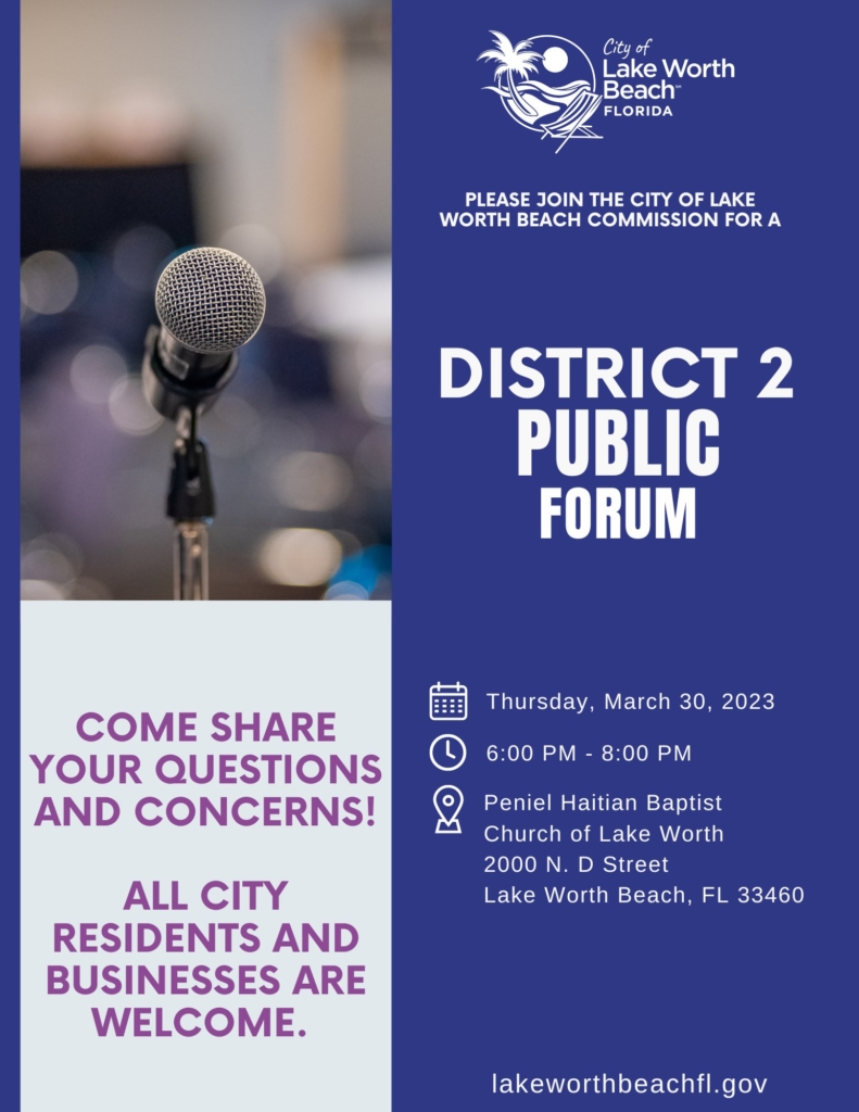 Please join the City of Lake Worth Beach City Commission for a District 2 Public Forum!